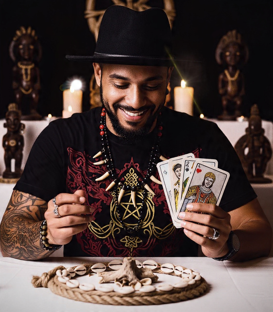 Sou , sacerdote de kimbanda tradicional e Tarólogo. Dedico a abrir caminhos , restaurar energias e ajudar cada consolente a reencontrar seu poder . Minha missão é unir a sabedoria dos antigos com a força dos exus pombo giras, voduns e ancestrais Traz
